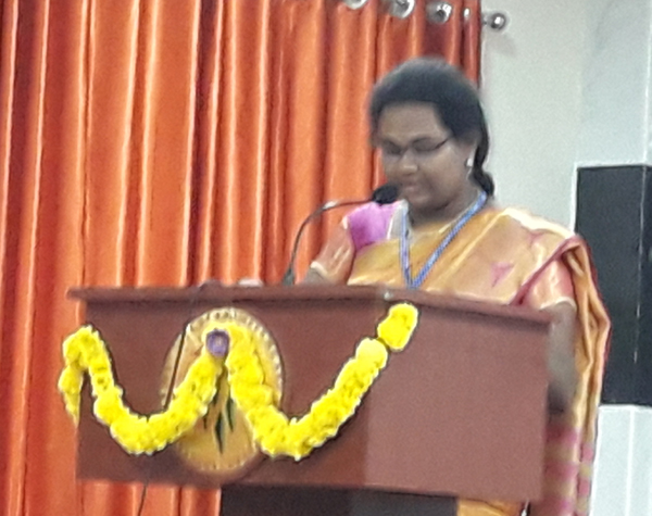 ![]() Title of the photo : Dignitaries on the dais L-R : Ms. Nagini, | ![]() Title of the photo : Ms. Deepthi, PG Student of ALIET |