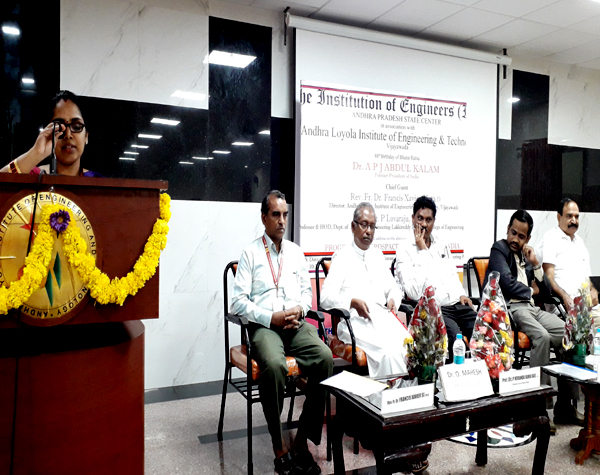 The Institution of Engineers (India), Andhra Pradesh State Center in association with Andhra Loyola Institute of Engineering & Technology (ALIET) organized the 88th Birthday of Bharat Ratna Dr. A PJ Abdul Kalam, Former President of India at the Seminar Hall of Andhra Loyola Institute of Engineering & Technology, Vijayawada on Monday, the 15th October, 2018 with gaiety. Nearly 100 persons participated in the above occasion.