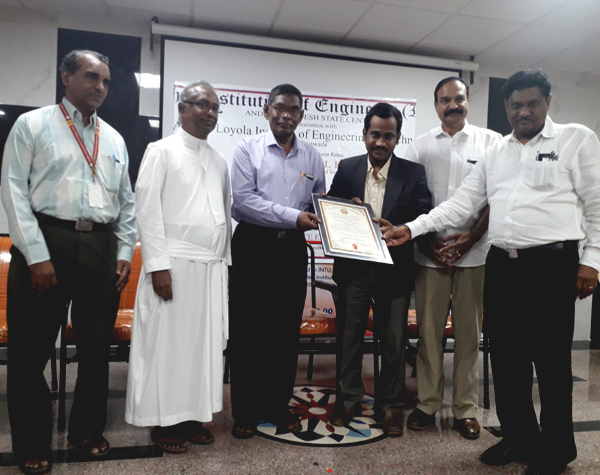 As a token of remembrance, Certificates of Excellence were given to the Speaker, Dr. Lovaraju by Er. M RS Prakasa Rao, FIE, Former Chairman of IEI, Vijayawada and the Chief Guest by Er. M Seshagiri Rao, MIE, Hon. Secretary of AP State Center respectively.
